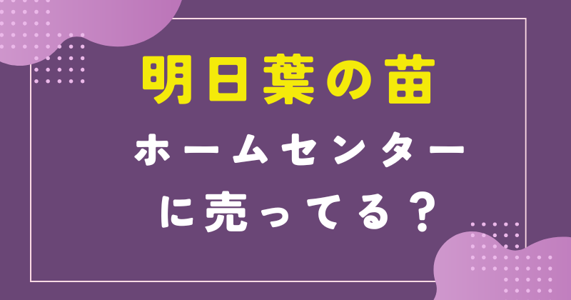 - 明日葉の苗は主にホームセンターや園芸店で買える