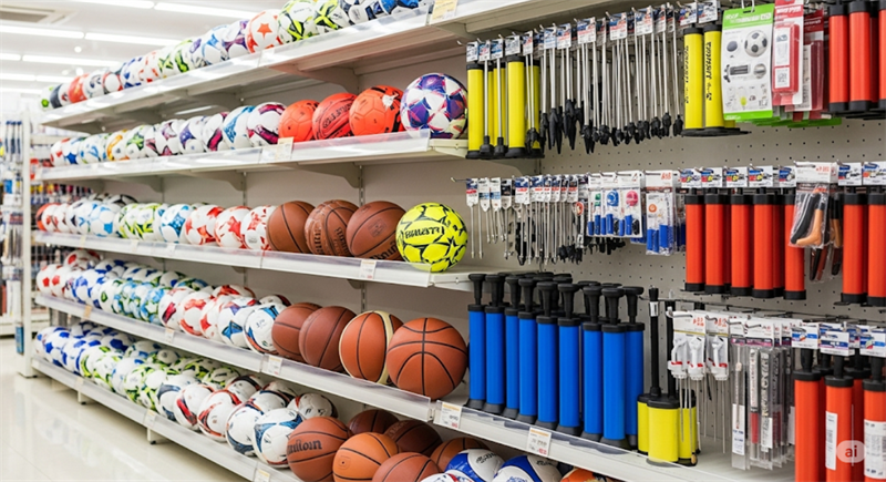 サッカーボールやバスケットボールなど、球技で使うボール用の空気入れは、風船用とは少し異なるため、適切な場所で購入する必要があります。最も一般的な購入場所は、スポーツデポやゼビオといった大型のスポーツ用品店です。各種ボールと一緒に、様々なメーカーの空気入れが豊富に揃っています。