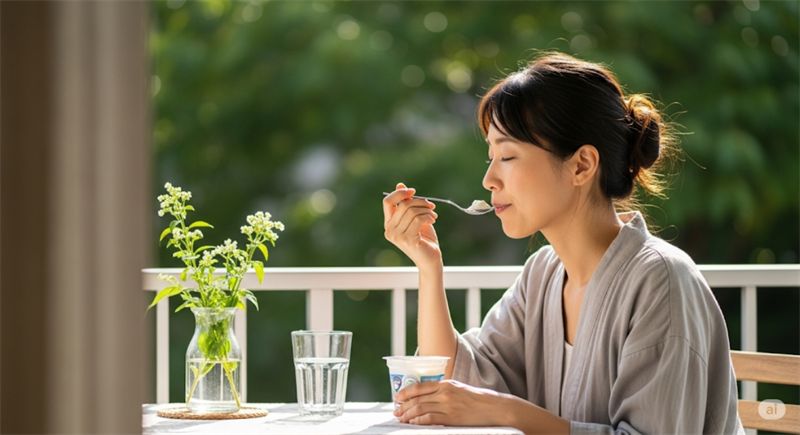 牛乳と並んで乳製品であるヨーグルトも、ニンニクの匂い対策に効果が期待されています。特に、翌日まで残る体からの匂いに対して、間接的なアプローチができる可能性があります。ニンニクの匂い成分の一部は、腸で吸収されてから血液に乗り、呼気や汗として排出されます。ヨーグルトに含まれる乳酸菌やビフィズス菌は、腸内環境を整える働きがあります。