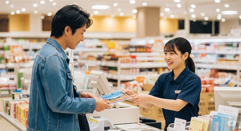 意外な場所かもしれませんが、イオンのような大型スーパーマーケットでも往復はがきを取り扱っていることがあります。多くの場合、施設内のインフォメーションカウンターやサービスカウンターで販売されています。郵便マーク(〒)の表示があるカウンターが目印です。